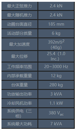 適合重量在5kg以下的機電產品試件,正弦定頻振動試驗、正弦掃頻振動試驗、寬帶隨機振動試驗。主要技術參數(shù)