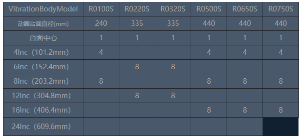 圓形擴展臺具有良好的頻響特性,其臺面螺釘分布符合上表標注尺寸。